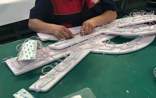 以LED灯带为光源发光,白天和晚上发光效果均匀亮丽,高效节能,大大提升商家规模与档次,使用寿命长。